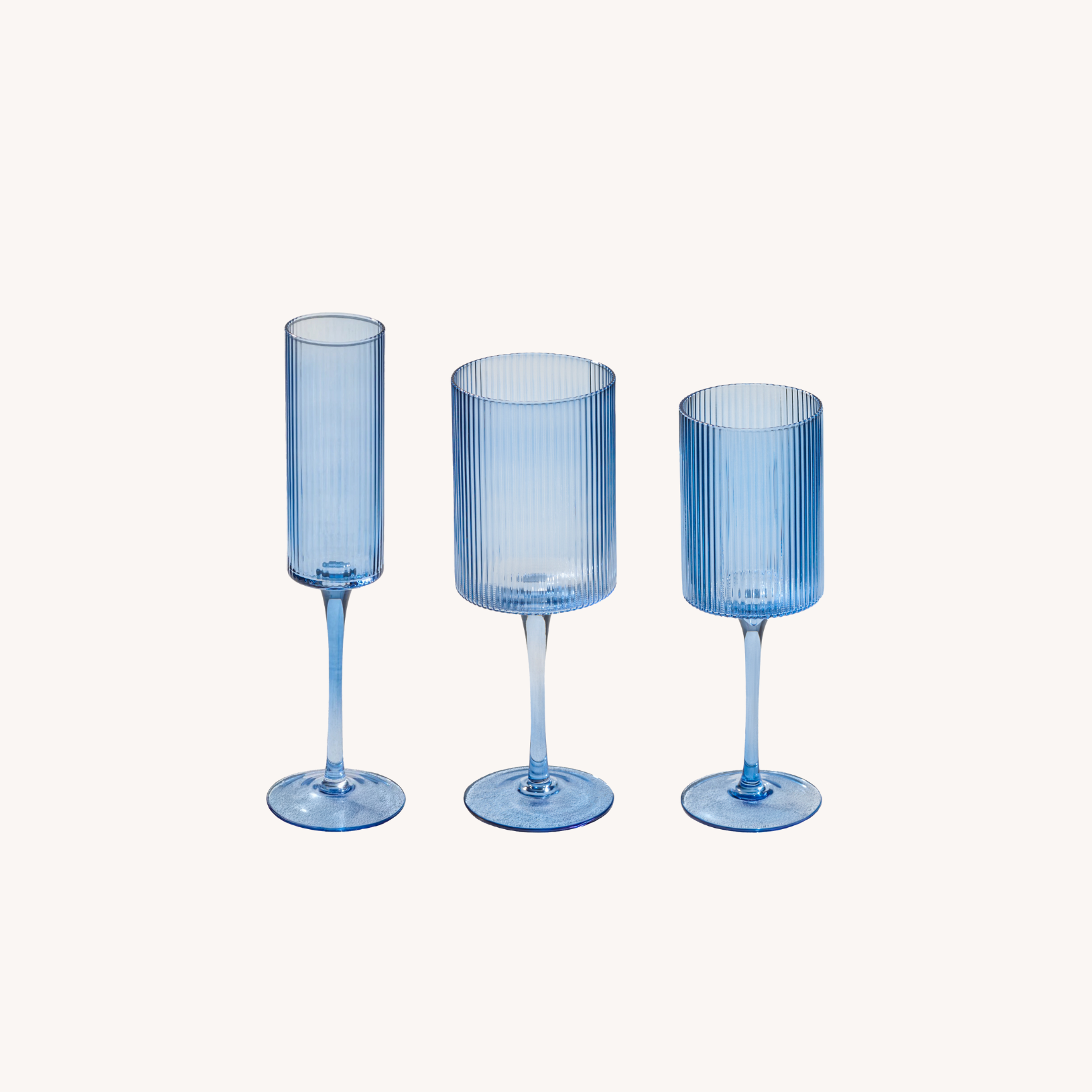 The Paris Collection blends contemporary design with a soft, romantic palette. Available in Blue, Purple, and Grey, these ribbed glasses add depth, texture, and a subtle pop of color to any event. Each size is thoughtfully crafted to complement both minimalist and richly styled tablescapes, offering a versatile and stylish choice for planners and hosts.